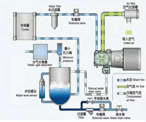 水潤(rùn)滑無油螺桿機(jī)系統(tǒng)基本都是可自動(dòng)根據(jù)設(shè)置的換水周期實(shí)現(xiàn)不停機(jī)下自動(dòng)換水為客戶省心。